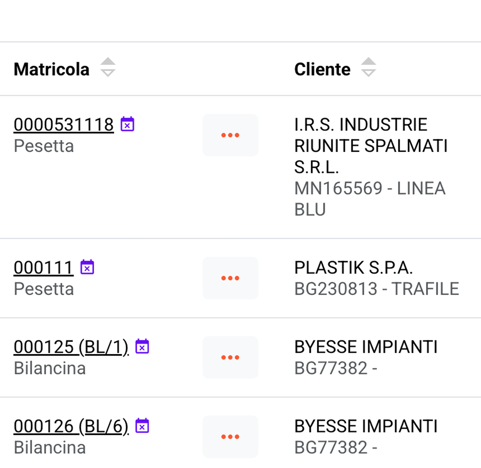 La stessa cosa avviene per i dati delle bilance, che sono facilmente accessibili e filtrabili sia dal cliente di appartenenza che da un elenco generale di bilance, filtrabile anche rispetto a criteri di scadenza delle verificazioni periodiche.